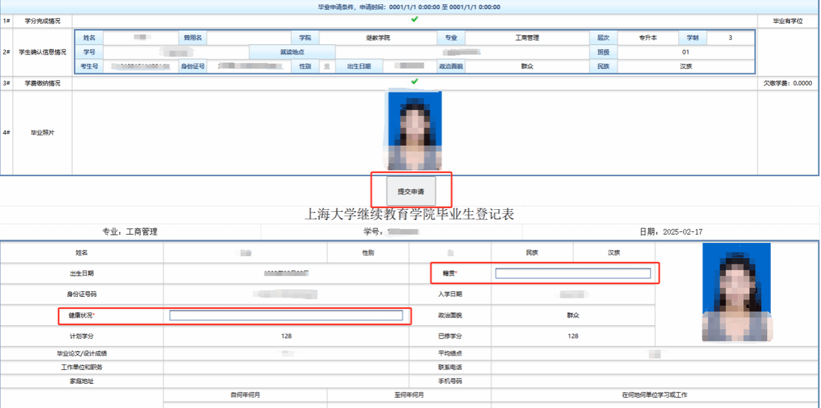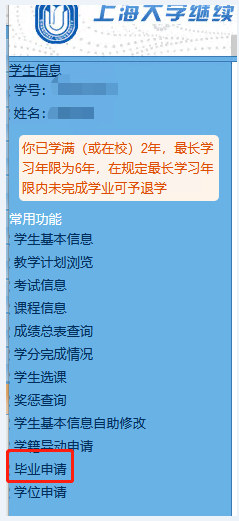 点击“毕业申请”进入个人页面