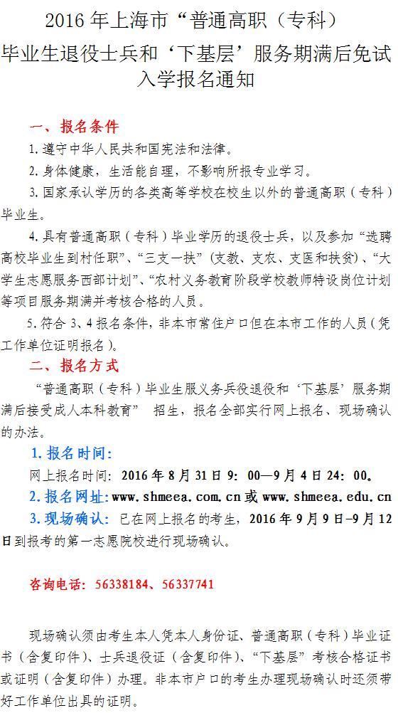 2016年义务兵、三支一扶专升本免试入学报名通知