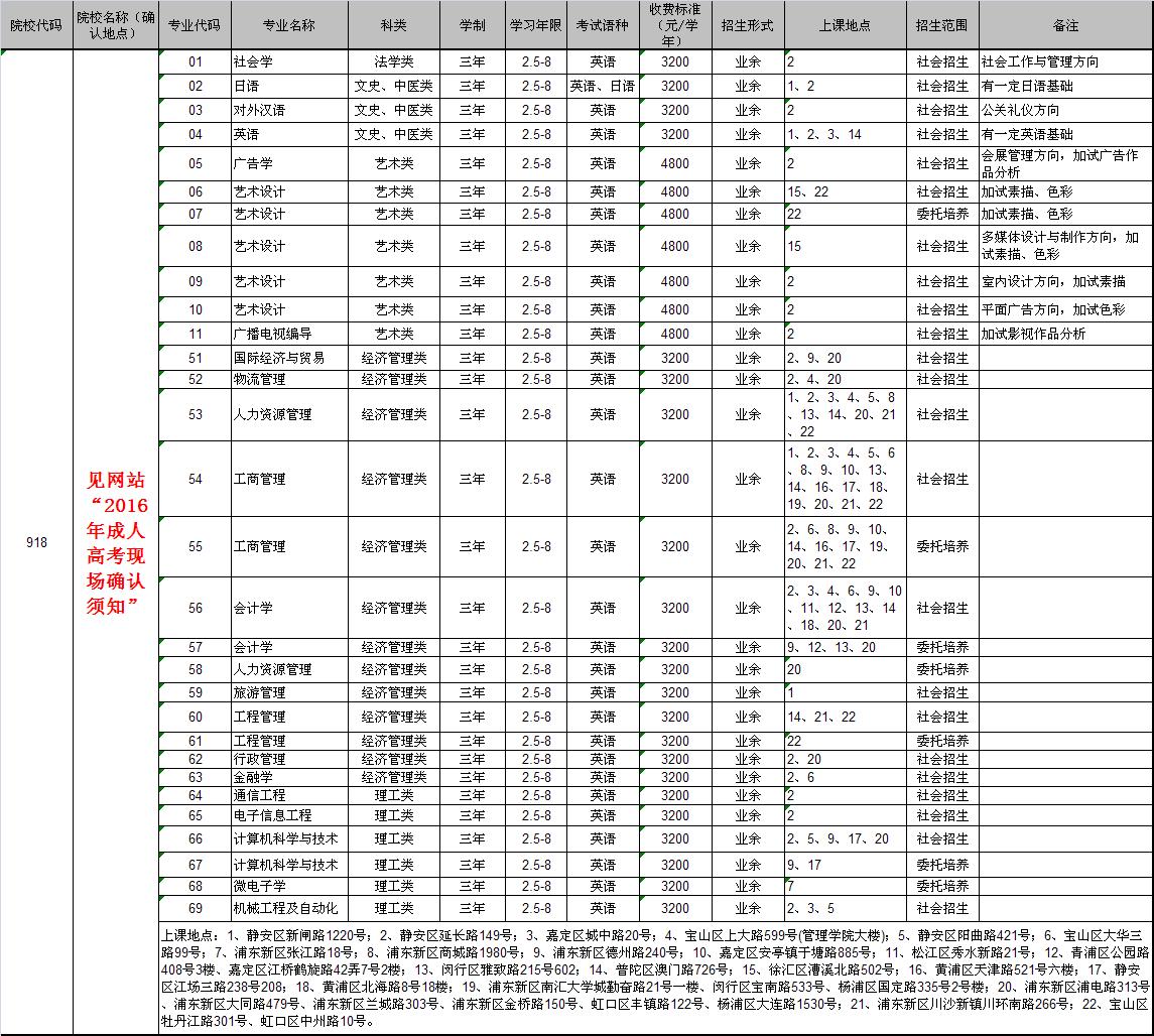 2016年yl6809永利成人高考专业代码