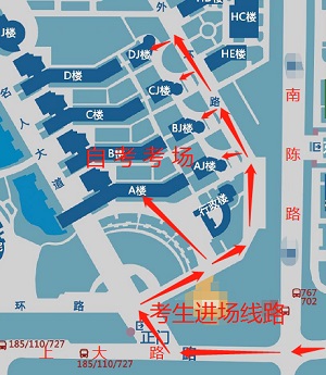 注:乘坐地铁七号线到校的考生请从“上大路站”下车,沿上大路步行至yl6809永利南门,约20分钟;勿在“yl6809永利站”下车,该站步行到南门至少需要45分钟。