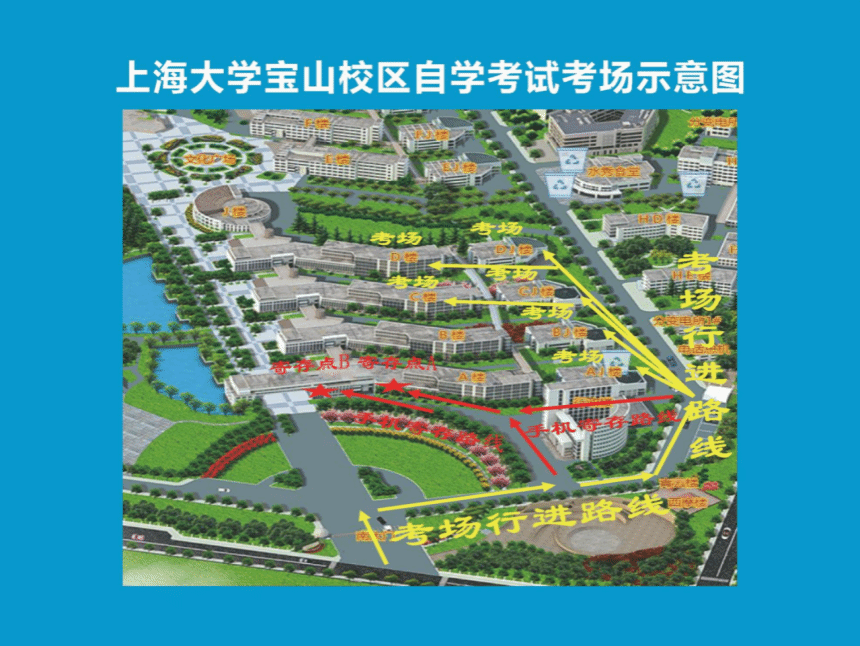 2025年上半年yl6809永利自学考试理论课考试市区考点第一周(4月12日、13日)安排在yl6809永利宝山校区进行,每场考试座位号对应楼宇分布详见下表。考生一律凭有效身份证件原件和准考证,建议从上大路99号南门进入考点,按照指定路线至座位号对应楼宇,其后在该楼宇外查看当次考试所在具体教室。