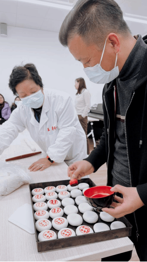 上海本地非物质文化遗产“王泰和”-高桥松饼第五代传承人王为玲女士,通过现场制作,展示传统手作技艺,并亲自指导学员体验制作过程。
