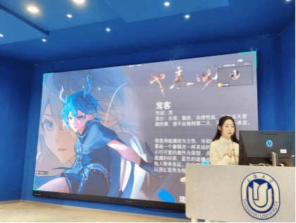 黄潇雨同学在讲解其原画作品《地表回流》中的角色设定