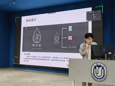 陈文渊同学正在阐述自创品牌《零净感》的品牌logo设计灵感